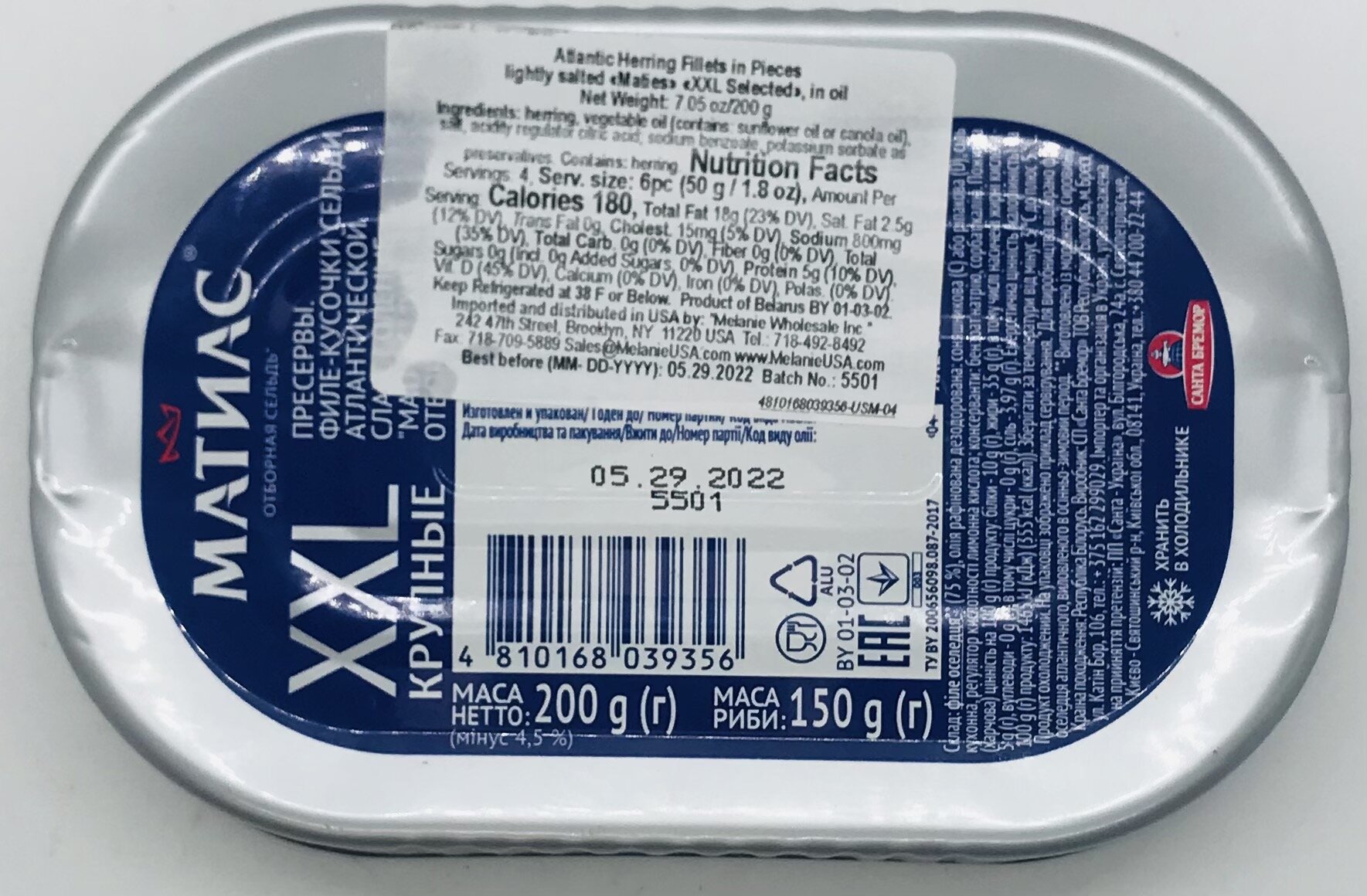 Herring, vegetable oil (contains: sunflower oil or canola oil), salt, acidity regulator citric acid; sodium benzoate, potassium sorbate as preservatives.