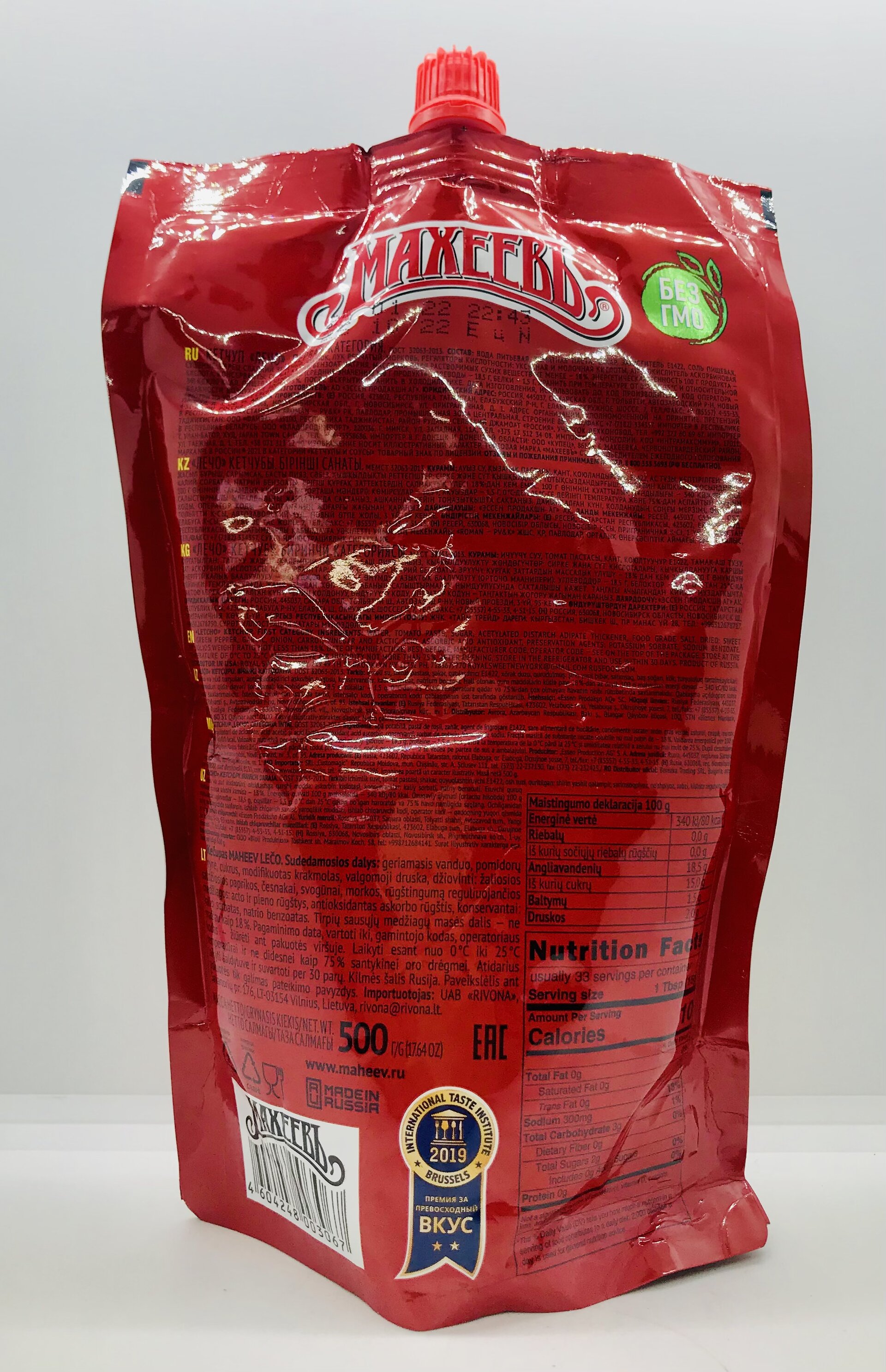 Water, tomato paste, sugar, acetylated distarch adipate thickener, food grade salt, dried: sweet green pepper, garlic, onion, carrot, vinegar and lactic acid, ascorbic acid antioxidant, preservation agents: potassium sorbate, sodium benzoate.