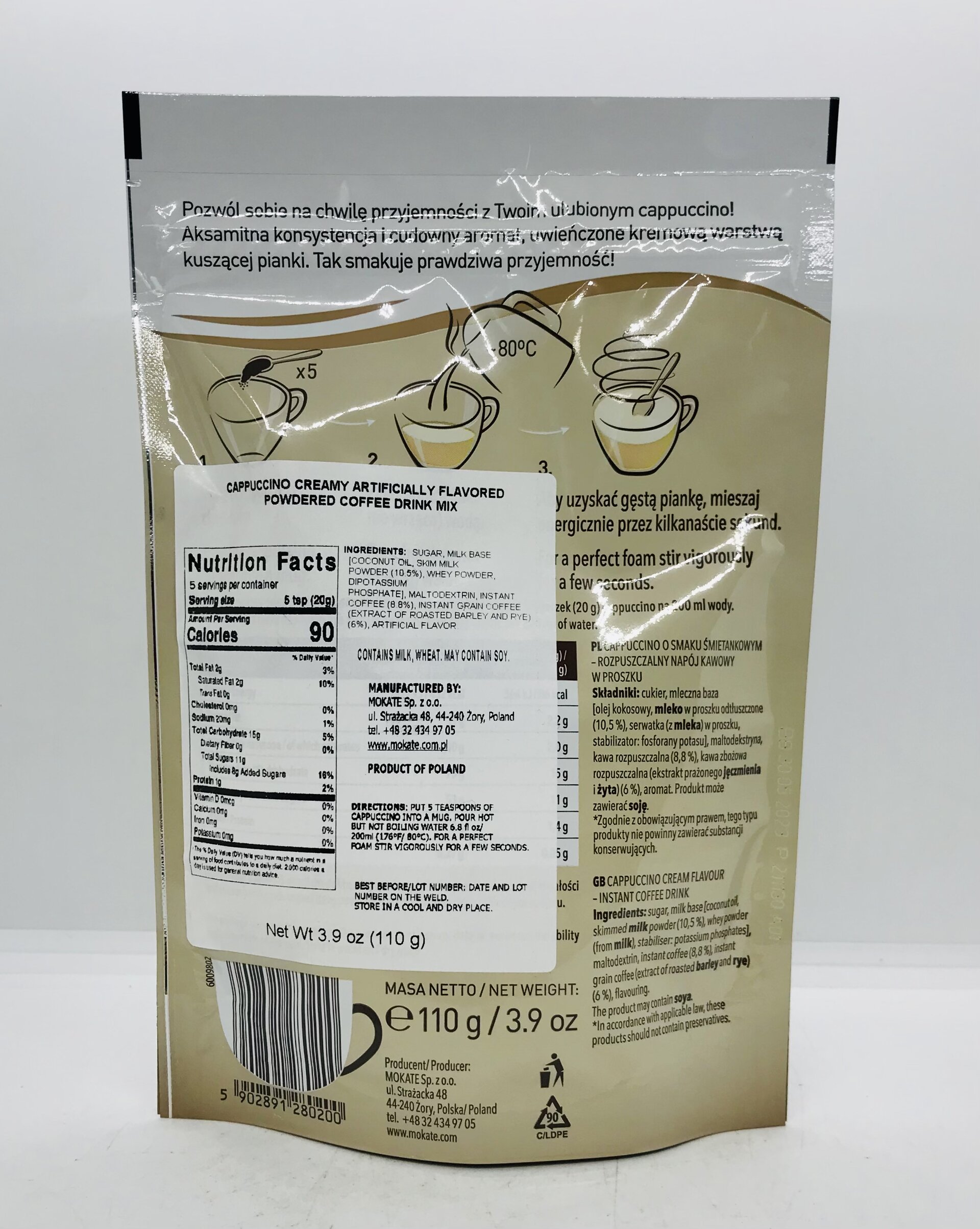 Sugar, milk base (coconut oil, skim milk Powder (10.5%), whey powder, dipotassium phosphate), maltodextrin, instant coffee (8.8%), instant grain coffee (extract of roasted barley and rye) (6%), artificial flavor.