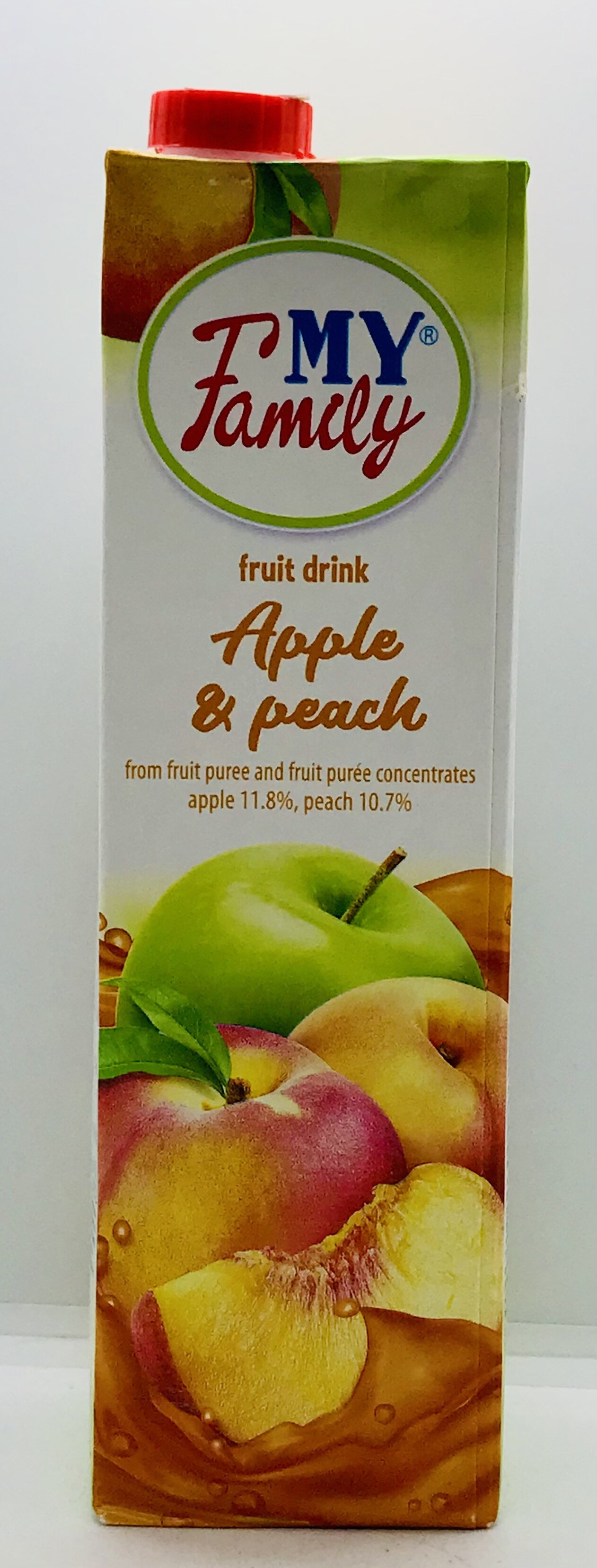 Water, apple puree, concentrated peach puree, sugar, acid citric acid, aroma, colour Beta carotene.