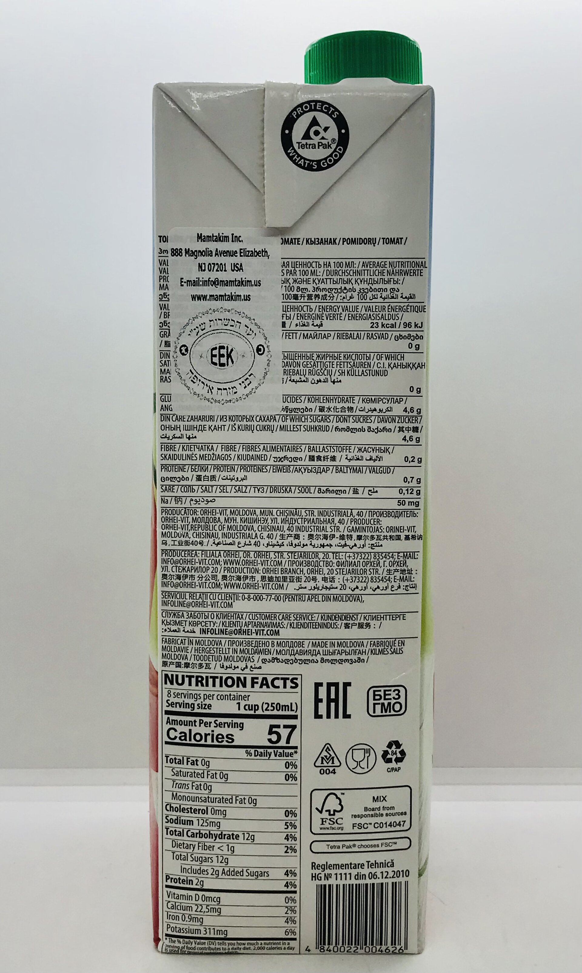 Reconstituted tomato juice, salt, sugar.