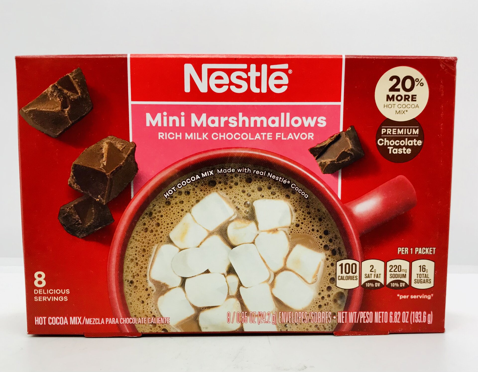 Sugar, dairy product solids (milk), corn syrup solids, marshmallows (sugar, corn syrup, dextrose, modified corn starch, gelatin, natural and artificial flavor), hydrogenated vegetable oil (coconut and/or palm kernel and/or soybean), cocoa processed with alkali, and less than 2% of salt, dipotassium phosphate, sodium caseinate, sodium aluminosilicate, guar gum, mono- and diglycerides, sucralose, artificial flavor. Contains: milk. May contain.