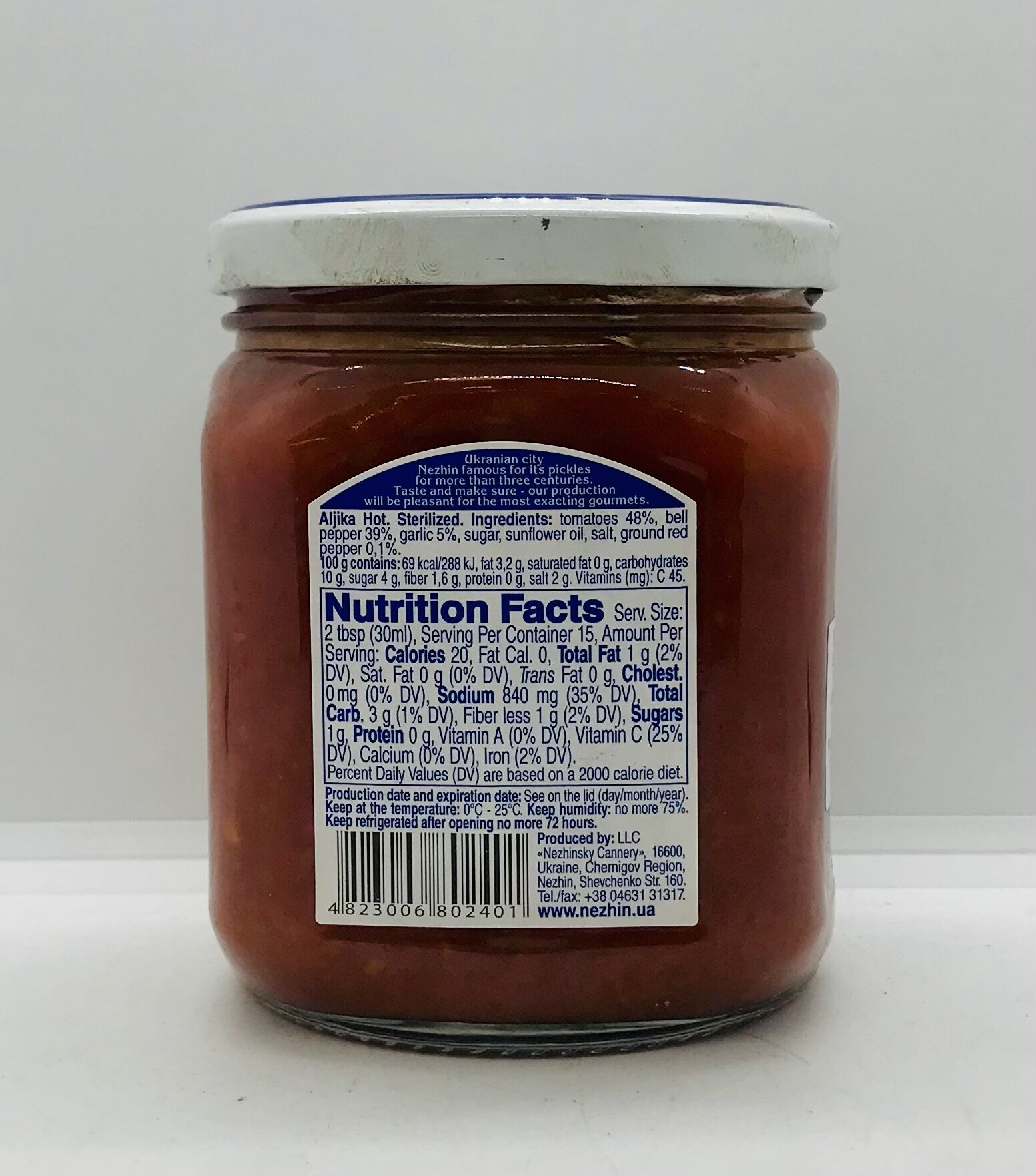 Tomatoes 48%, pepper 39%, garlic 5%, sugar, sunflower oil, salt, ground red bell pepper 0,1%.