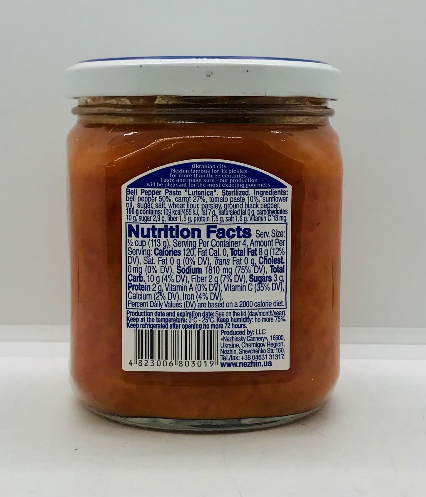 Bell pepper 50%, carrot 27%, tomato paste 10%, sunflower oil sugar, salt, wheat flour, parsley, ground black pepper.
