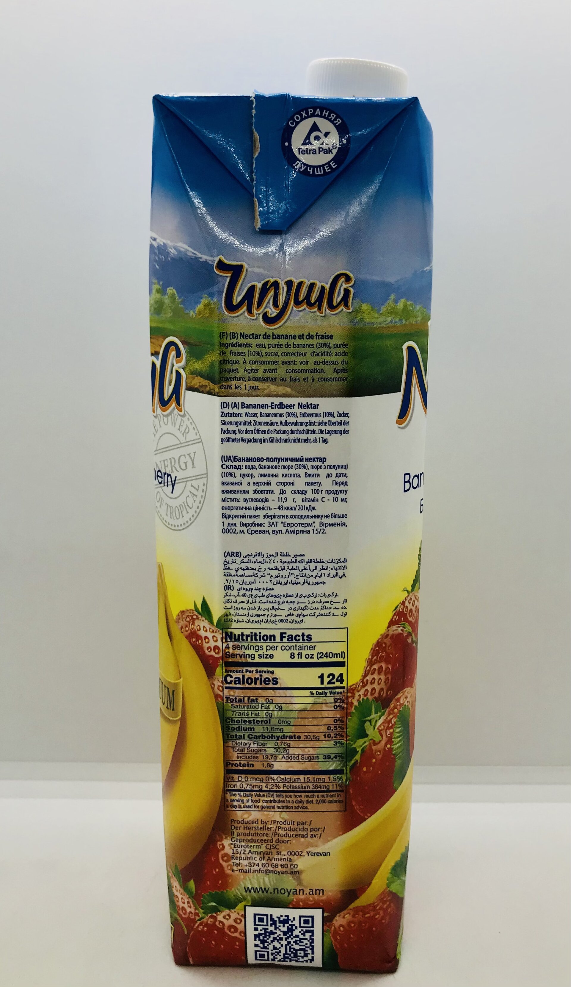 Water, banana puree, strawberry puree, sugar, acidity regulator citric acid.