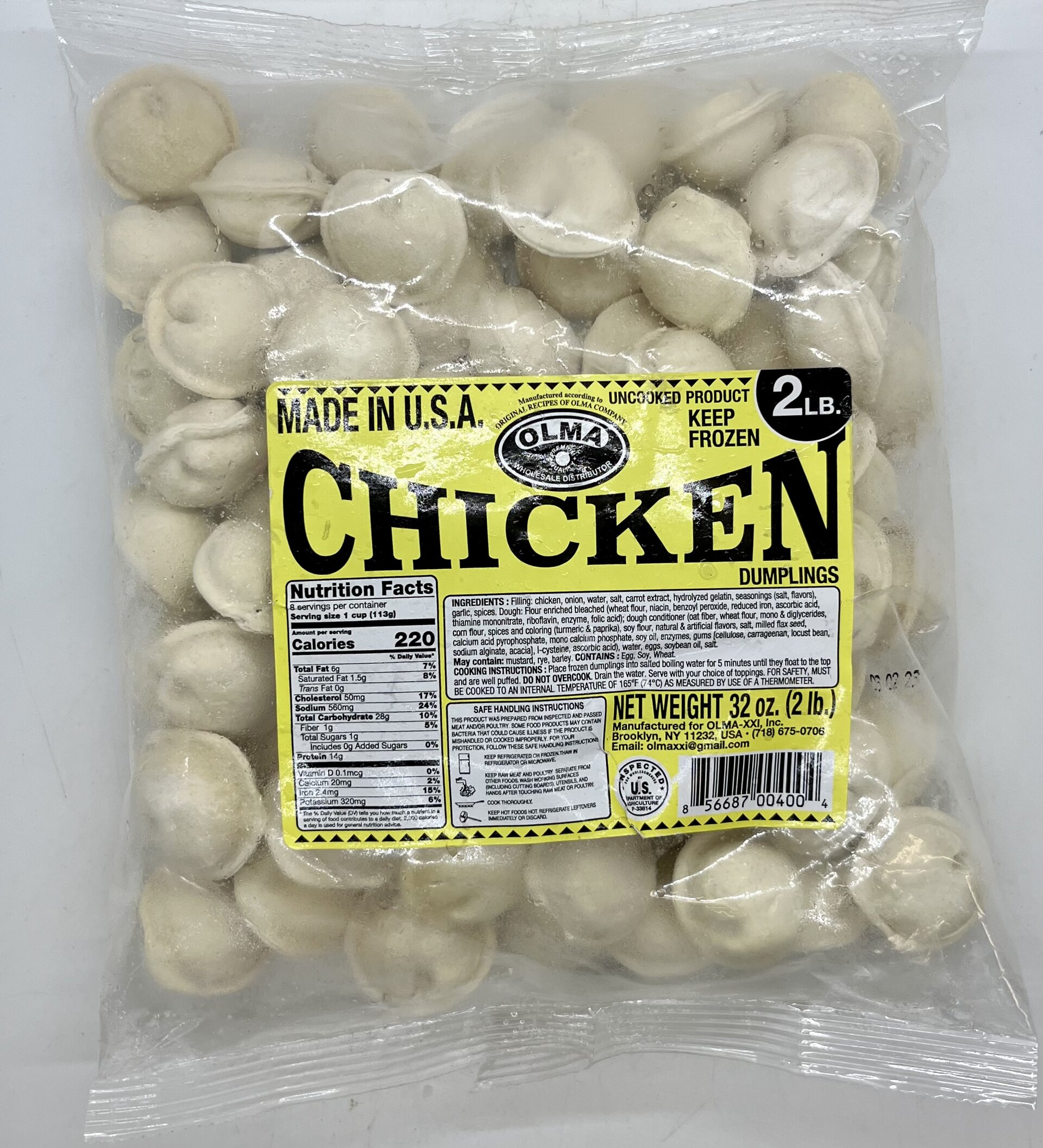 Filing, chicken, onion, water, salt, carrot extract, hydrolyzed gelatin, seasonings (salt, flavors), garlic, spices. Dough: Flour enriched bleached (wheat flour, niacin, benzoyl peroxide, reduced iron, ascorbic acid, thiamine mononitrate, riboflavin, enzyme, folic acid); dough conditioner (oat fiber, wheat flour, mono & diglycerides, com flour, spices and coloring turmeric & paprika), soy flour, natural & artificial flavors, salt, milled flax seed, calcium acid pyrophosphate, mono calcium phosphate, soy oil, enzymes, gums (cellulose, carrageenan, locust bean, sodium alginate, a F-cysteine, ascorbic acid), water, eggs, soybean oil, sat.