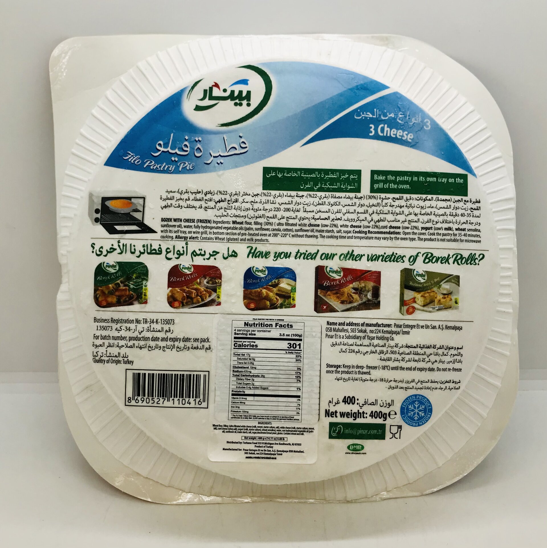 Wheat flour, Filling (ultra filtrated white cheese (milk, rennet, starter culture, salt), white cheese (milk, starter culture, rennet, salt), curd cheese (whey, salt), yogurt (milk, starter culture), wheat semolina), water, non hydrogenated vegetable oil (palm oil), sunflower oil, maize starch, salt, sugar, deactivated bread yeast, gluten.