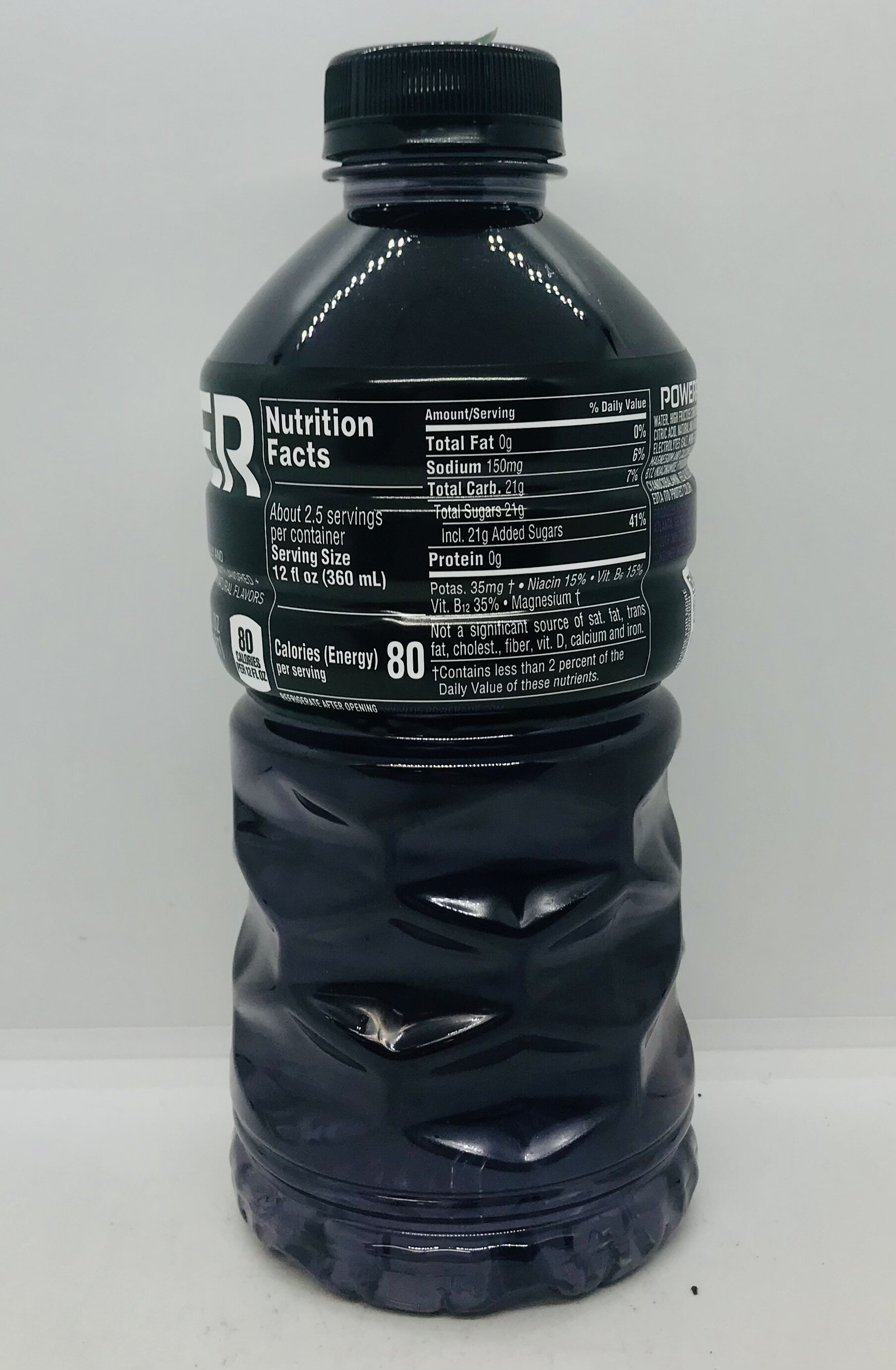 WATER, HIGH FRUCTOSE CORN SYRUP, LESS THAN 0.5% OF: CITRIC ACID, NATURAL AND ARTIFICIAL FLAVORS, ELECTROLYTES (SALT, MONO-POTASSIUM PHOSPHATE, MAGNESIUM AND CALCIUM CHLORIDES), VITAMINS B3, B6, B12 (NIACINAMIDE, PYRIDOXINE HYDROCHLORIDE, CYANOCOBALAMIN), RED 40, BLUE 1, CALCIUM DISODIUM EDTA (TO PROTECT COLOR).