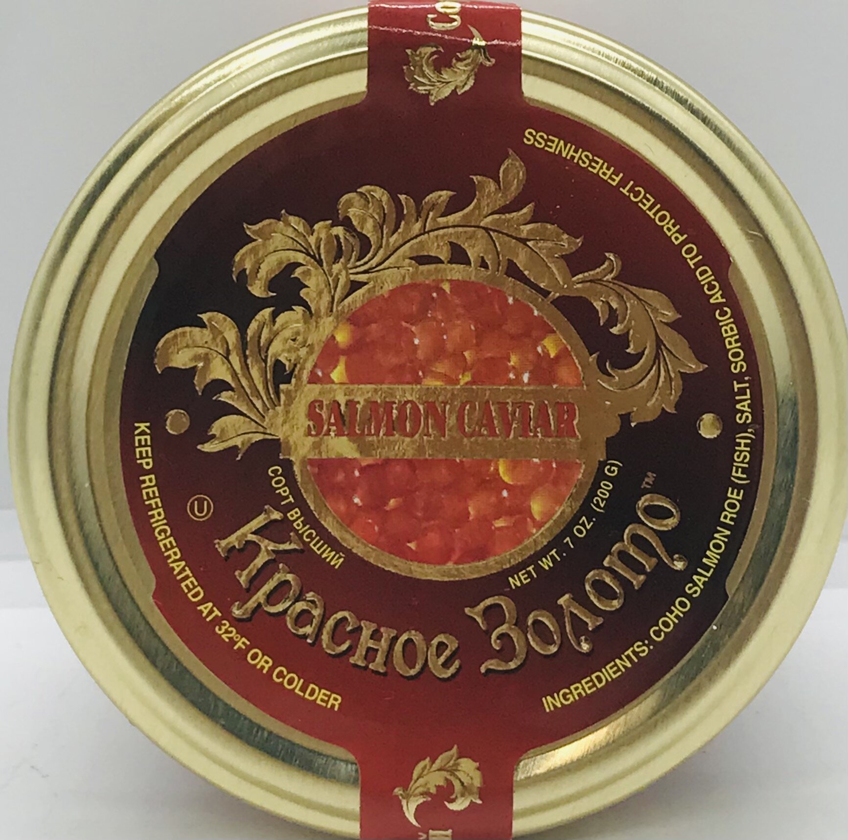 Coho salmon roe (fish), salt, sorbic acid to protect freshness.