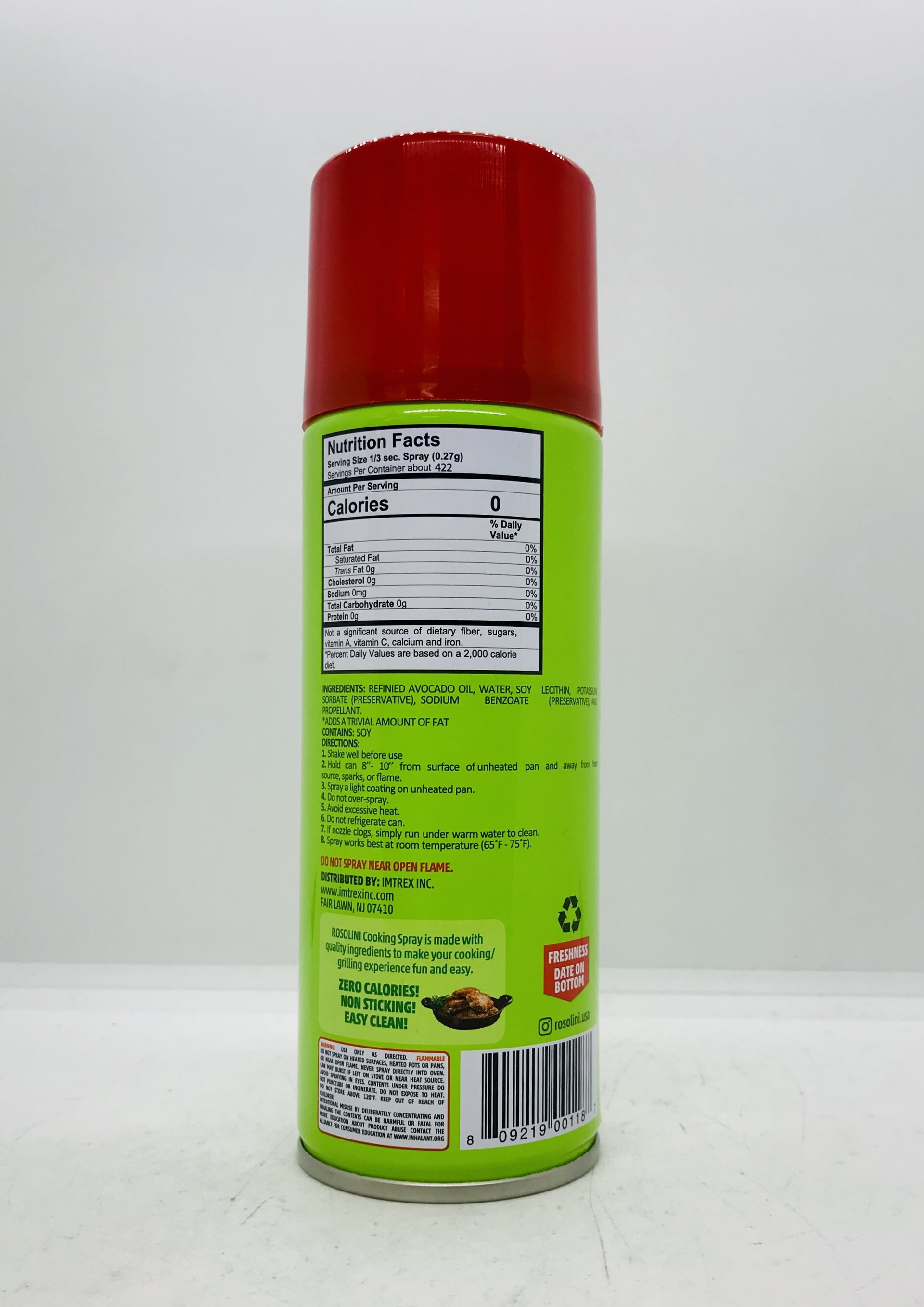 Refined avocado oil, water, soy lecithin, potassium sorbate, (preservative), sodium benzoate (preservative) and propellant.