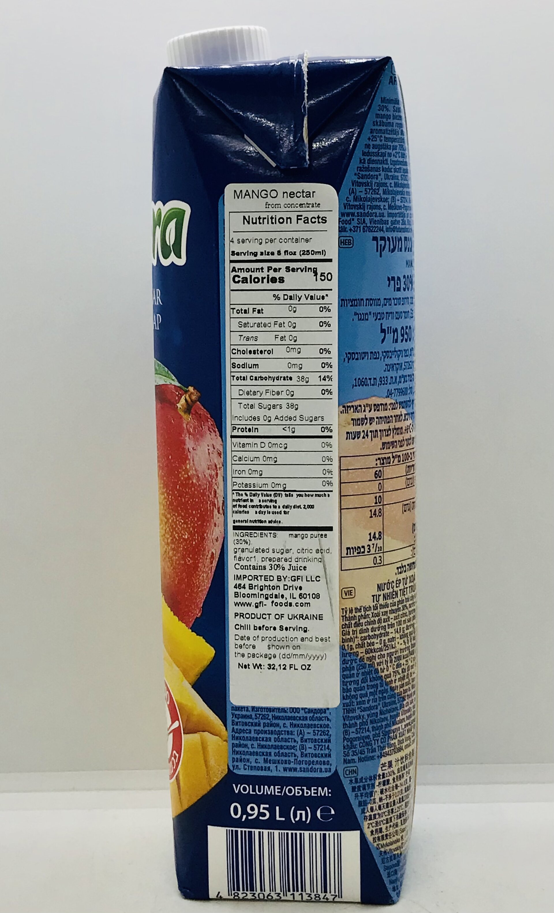 Mango puree, granulated sugar, citric acid, flavor, prepared drinking.