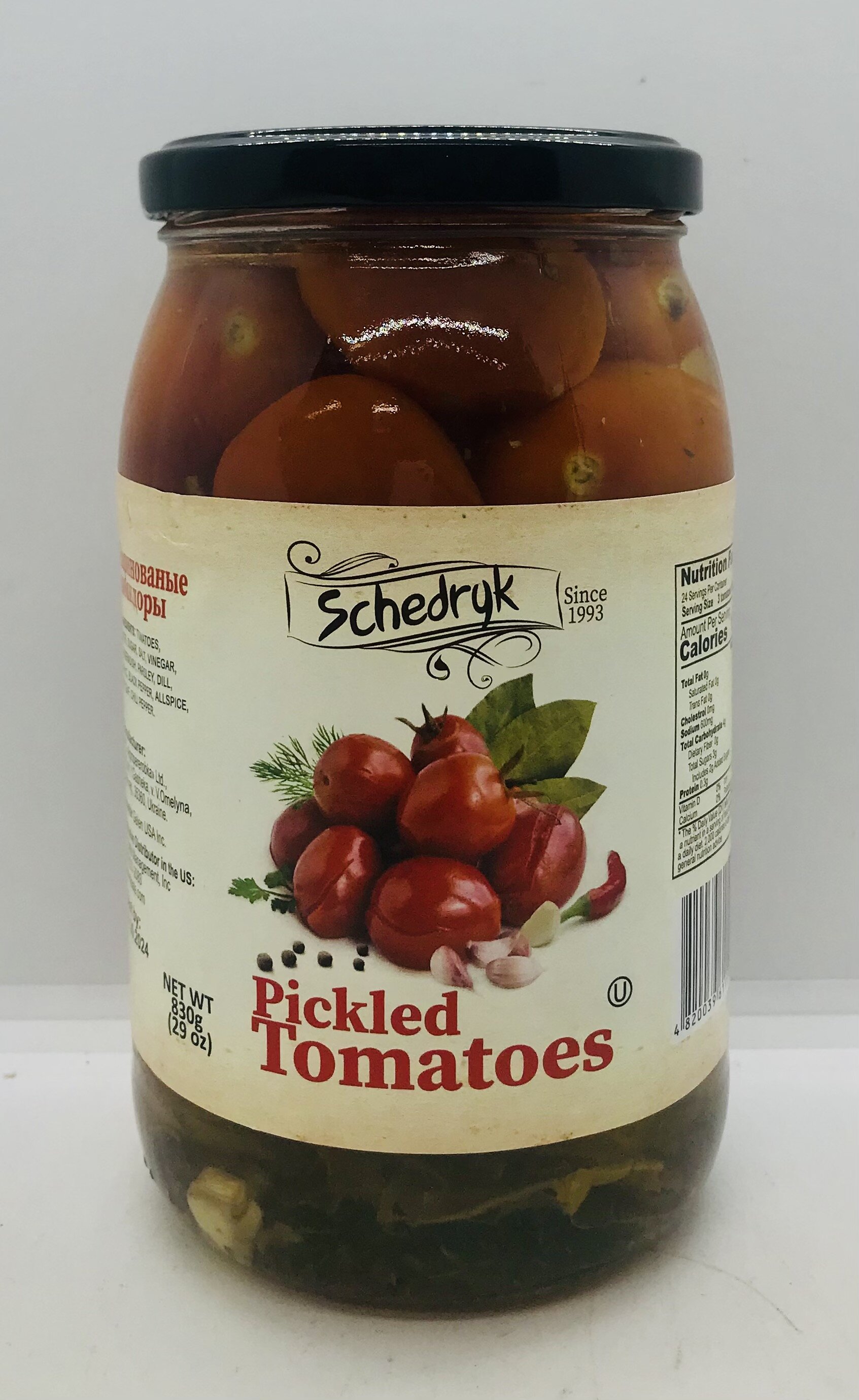 Tomatoes, water, sugar, salt, vinegar, horseradish, parsley, dill, garlic, black pepper, allspice, bay leaf, chili pepper.