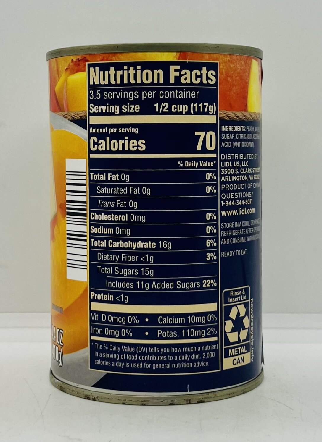 Peach, water, sugar, citric acid, ascorbic acid.