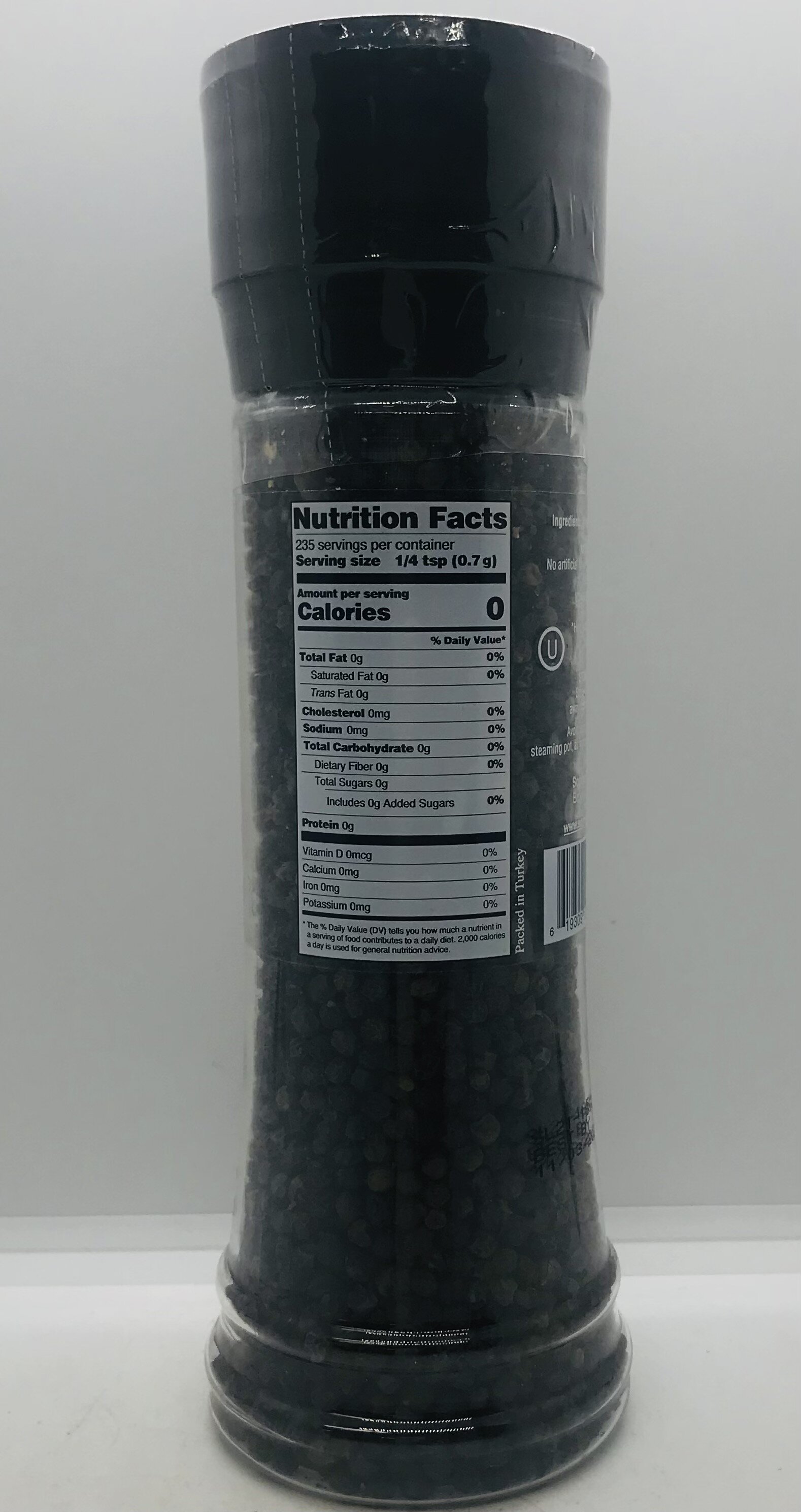 Whole black pepper.