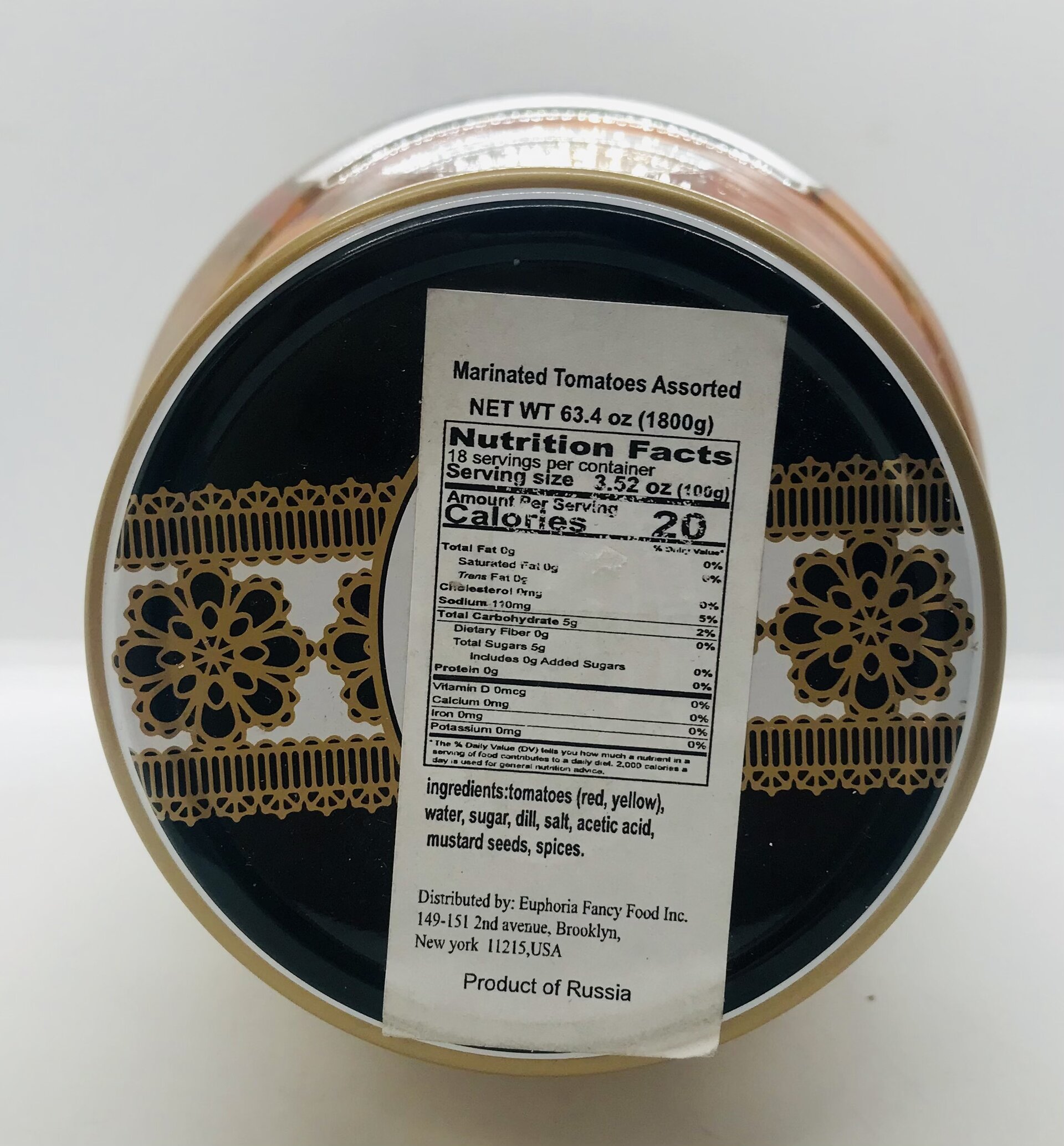 Tomatoes (red, yellow), water, sugar, dill, salt, acetic acid, mustard seeds, spices.