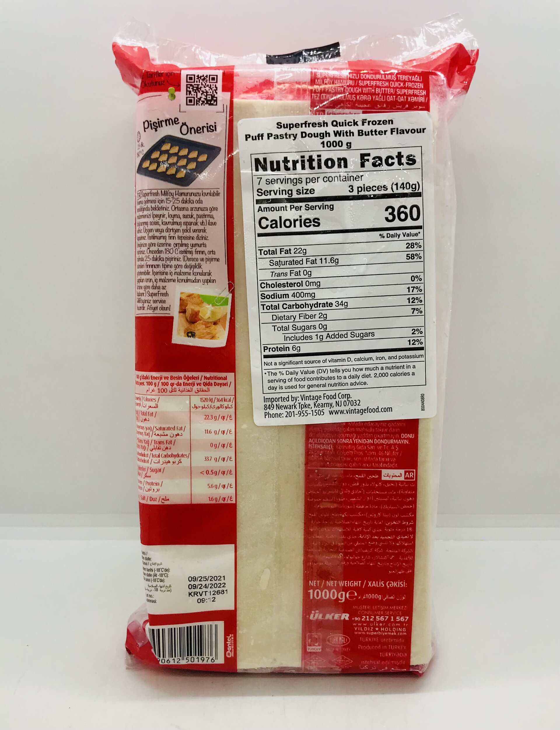 Wheat flour, water, vegetable margarine [vegetable oil (varying amounts of palm olein, palm stearin, fully hydrogenated palm canola, cotton, sunflower oil), water, emulsifiers (mono and diglycerides of vegetable fatty acids, lecithin (sunflower, soy)), salt, acidity regulator (citric acid), preservative (potassium sorbate), coloring agent (beta carotene), butter flavoring], salt, sugar, wheat gluten.