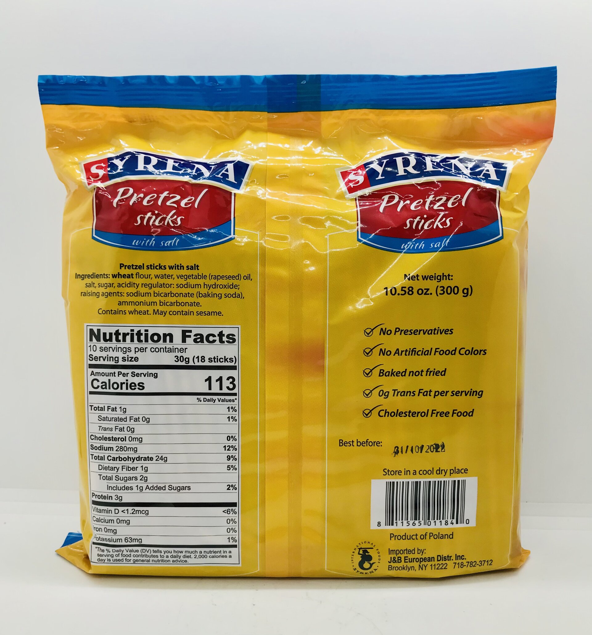 Wheat flour, water, vegetable (rapeseed) oil, salt, sugar, acidity regulator: sodium hydroxide; raising agents: sodium bicarbonate (baking soda), ammonium bicarbonate.