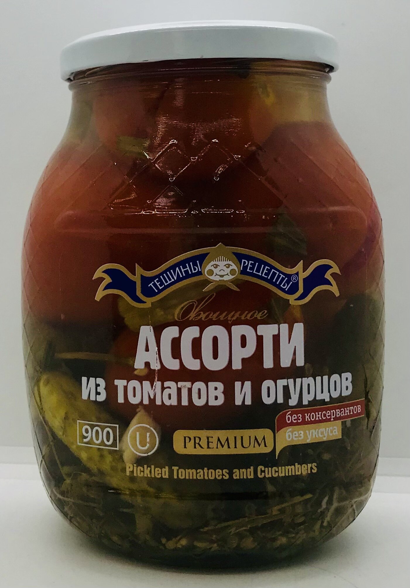 Tomatoes, water, cucumbers, salt, dill, sugar, spices, acidity regulator: citric acid, celery leaf, sweetener: sucralose.