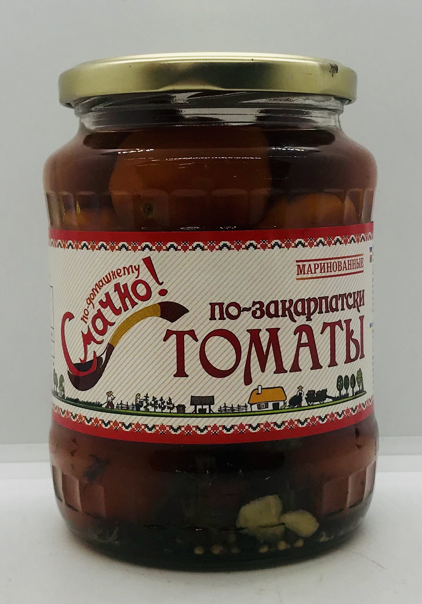 Tomatoes, sugar, salt, mustard seed, vinegar, greens, garlic, spices.