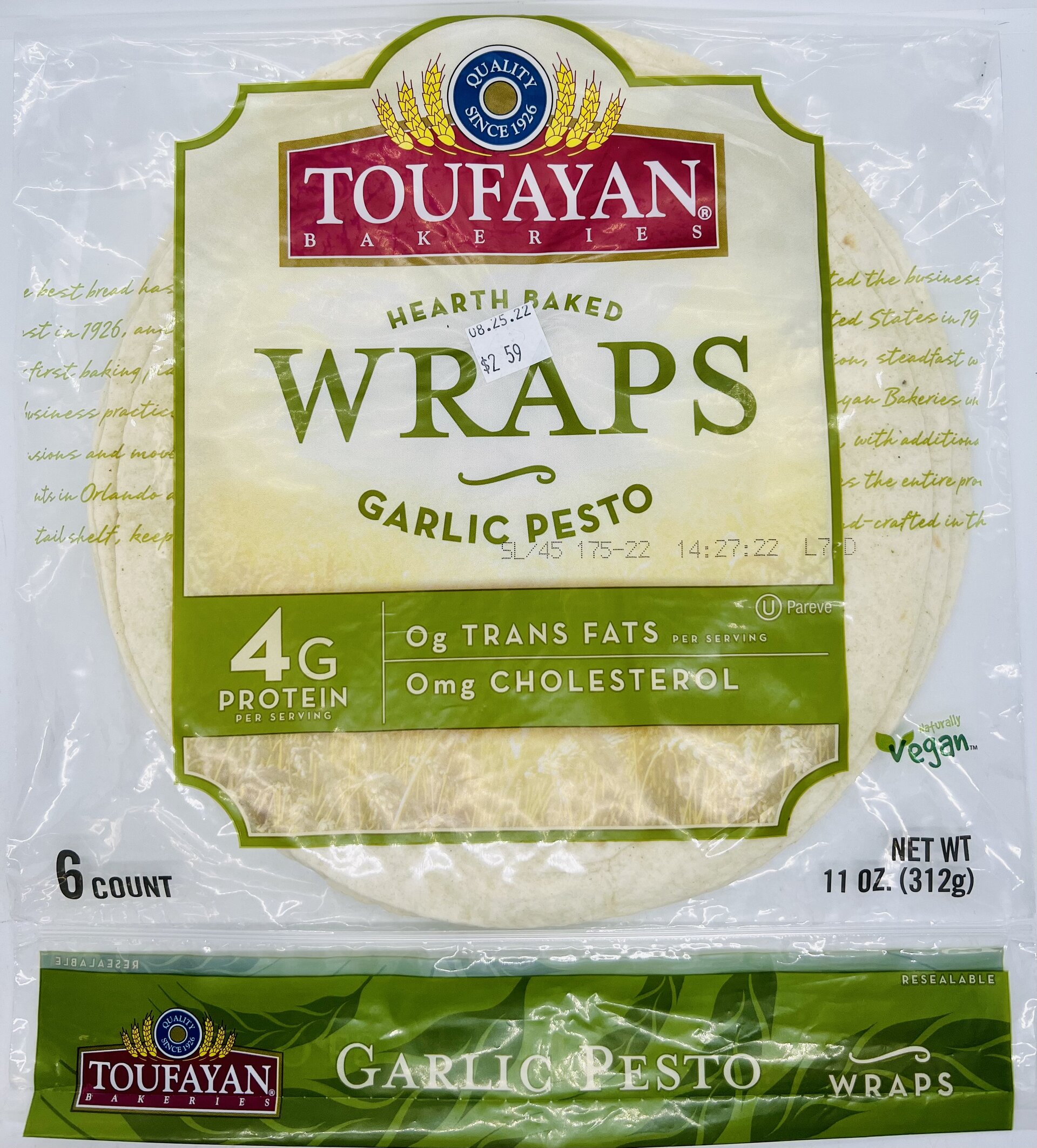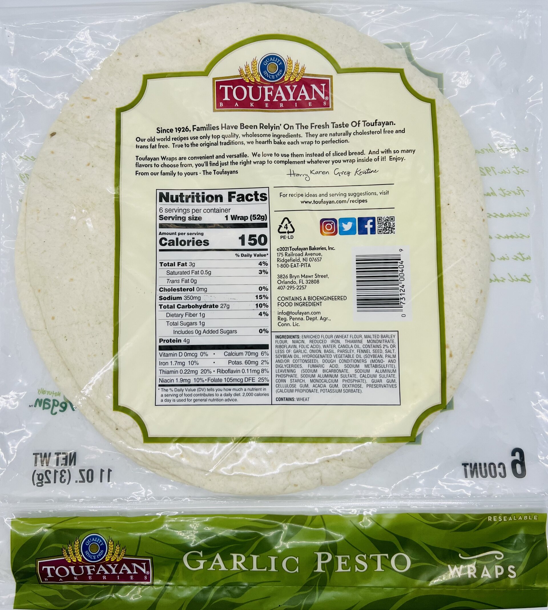 ENRICHED FLOUR (WHEAT FLOUR, MALTED BARLEY FLOUR, NIACIN, REDUCED IRON, THIAMINE MONONITRATE, RIBOFLAVIN, FOLIC ACID), WATER, CANOLA OIL, CONTAINS 2% OR LESS OF: GARLIC, ONION, BASIL, PARSLEY, FENNEL SEED, SALT, SOYBEAN OIL, HYDROGENATED VEGETABLE OIL (SOYBEAN, PALM AND/OR COTTONSEED), DOUGH CONDITIONERS (MONO- AND DIGLYCERIDES, FUMARIC ACID, SODIUM METABISULFITE), LEAVENING (SODIUM BICARBONATE, SODIUM ALUMINUM PHOSPHATE, SODIUM ALUMINUM SULFATE, CALCIUM SULFATE, CORN STARCH, MONOCALCIUM PHOSPHATE), GUAR GUM, CELLULOSE GUM, ACACIA GUM, DEXTROSE, PRESERVATIVES (CALCIUM PROPIONATE, POTASSIUM SORBATE).