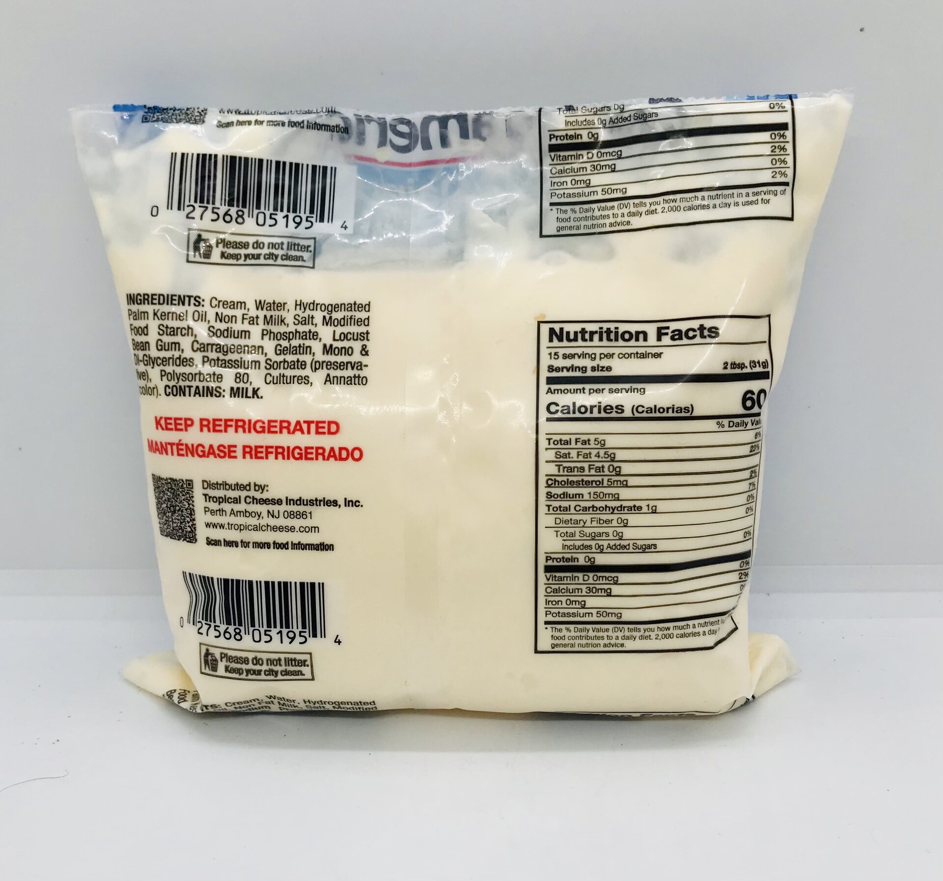 Cream , water, Hydrogenated palm kernel oil, non ,fat milk, salt sodium , phosphate , locust.