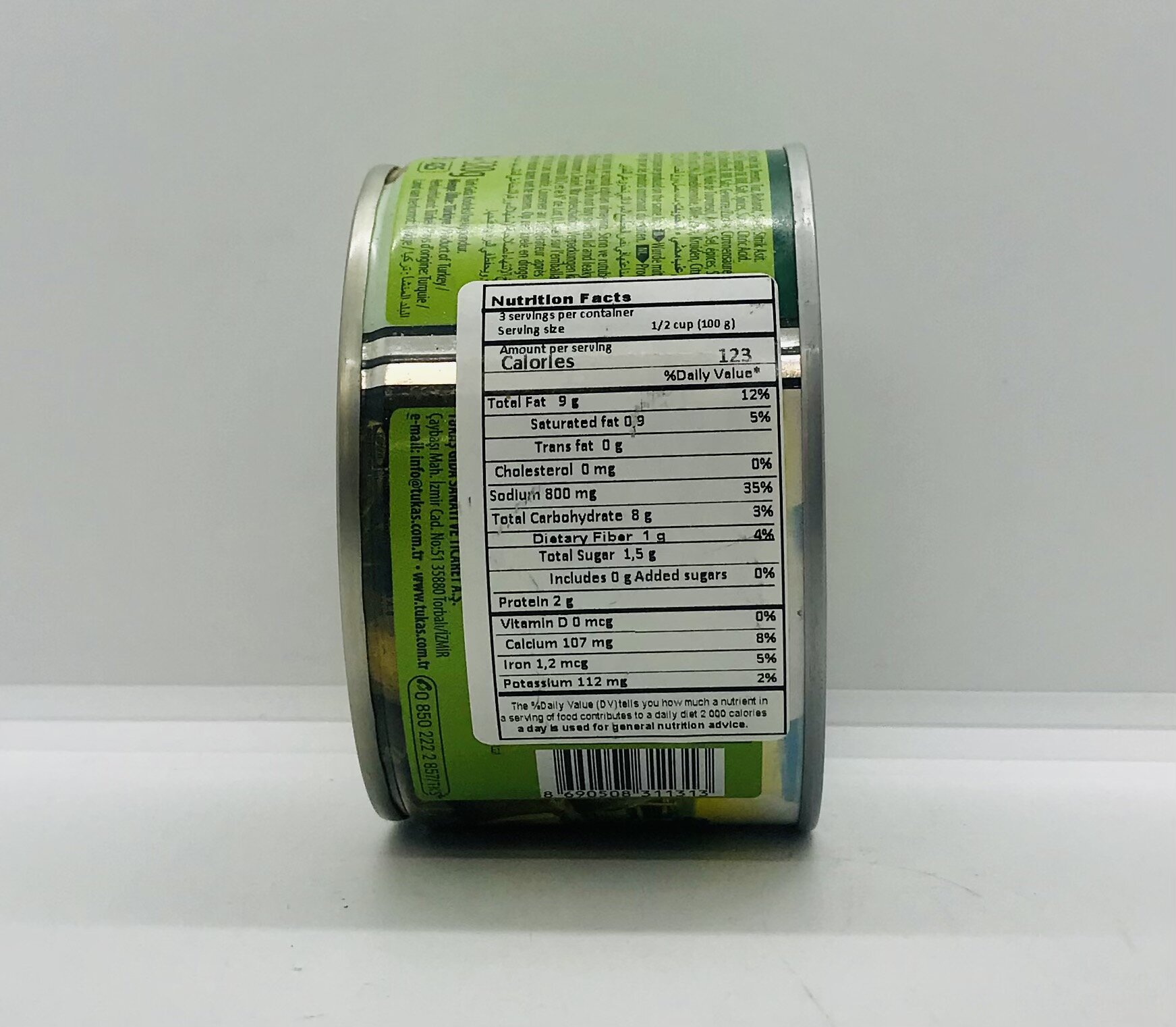 Water, onions, vineleaves (17%), rice (12%), vegetable oil, dill, salt, spices, sugar, citric acid.