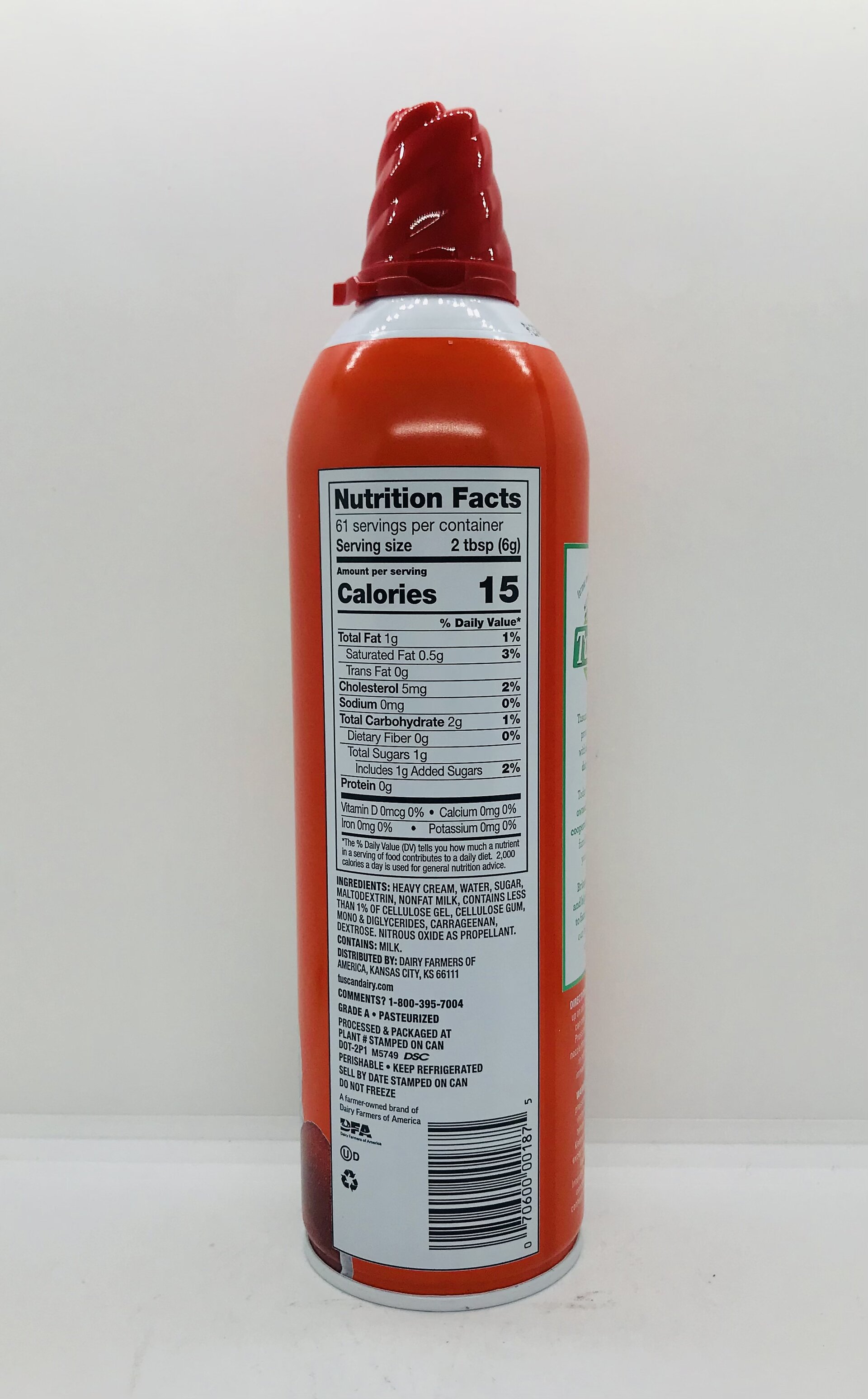 Heavy cream, water, sugar, maltodextrin, nonfat milk, contains less than 1% of cellulose gel, cellulose gum, mono & diglycerides, carrageenan, dextrose.