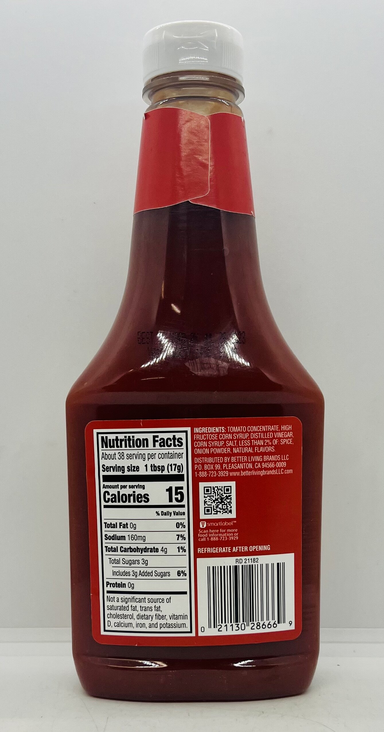Tomato concentrate, high fructose corn syrup, distilled vinegar, corn syrup, salt, less than 2% of: spice, onion powder, natural flavors.