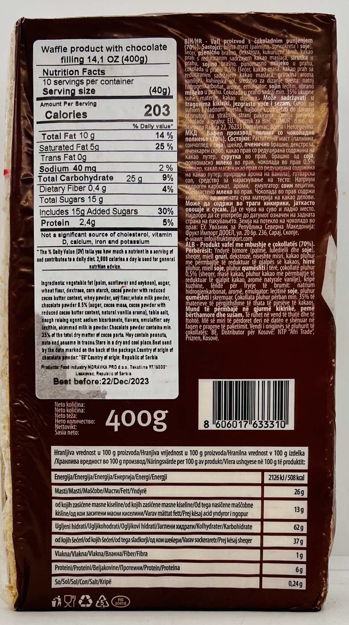Vegetable fat (palm, sunflower and soybean), sugar, wheat flour, dextrose, corn starch, cocoa powder with reduced cocoa butter content, whey powder, say flour, whole milk powder, chocolate powder 0.5% (sugar, cocoa mass, cocoa powder with reduced cocoa butter content, natural vanilla aroma), table salt, dough raising agent sodium bicarbonate, flavors, emulsifier, soy lecithin, skimmed milk in powder.
