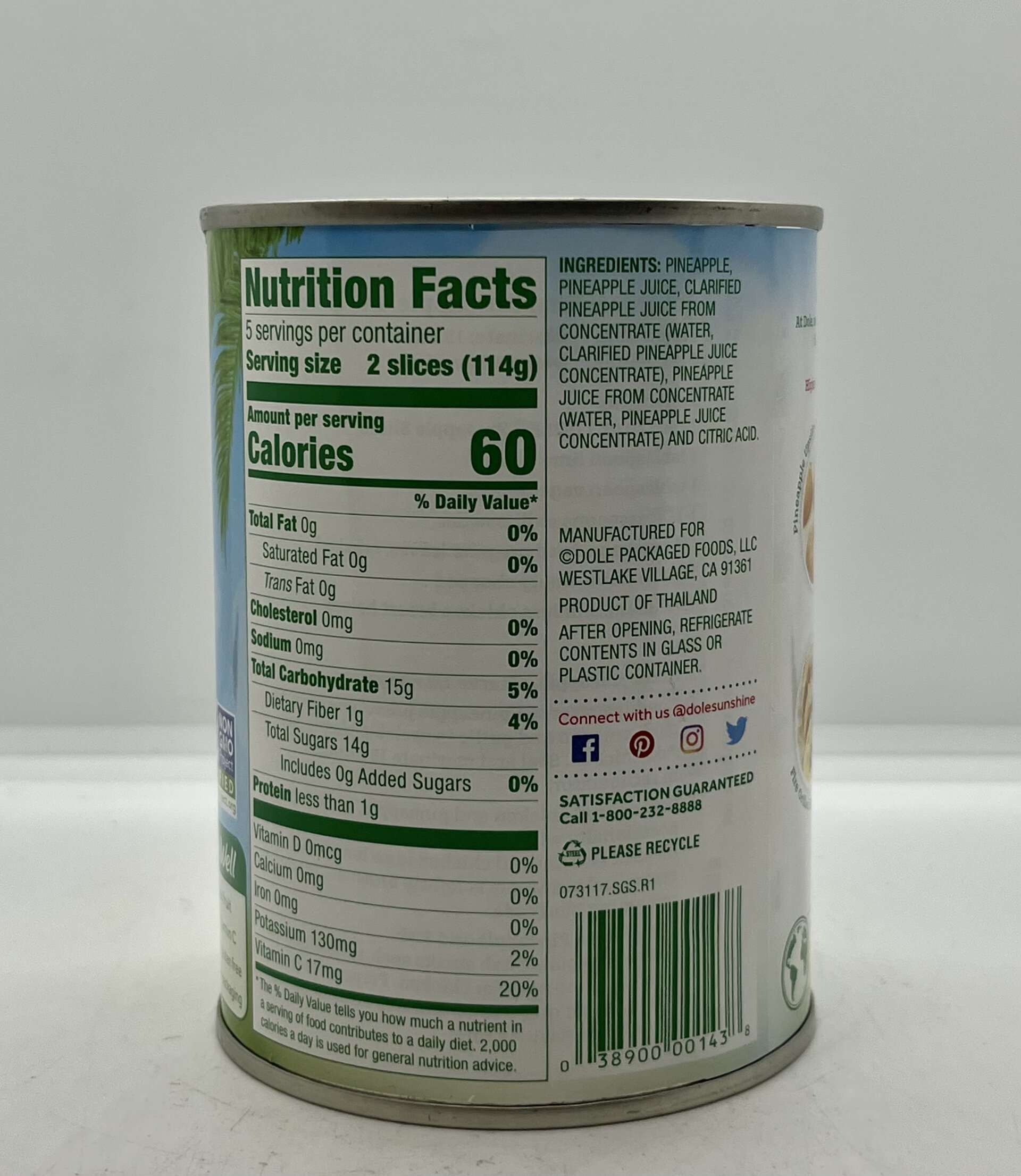 PINEAPPLE, PINEAPPLE JUICE, CLARIFIED PINEAPPLE JUICE FROM CONCENTRATE (WATER, CLARIFIED PINEAPPLE JUICE CONCENTRATE), PINEAPPLE JUICE FROM CONCENTRATE (WATER, PINEAPPLE JUICE CONCENTRATE) AND CITRIC ACID.