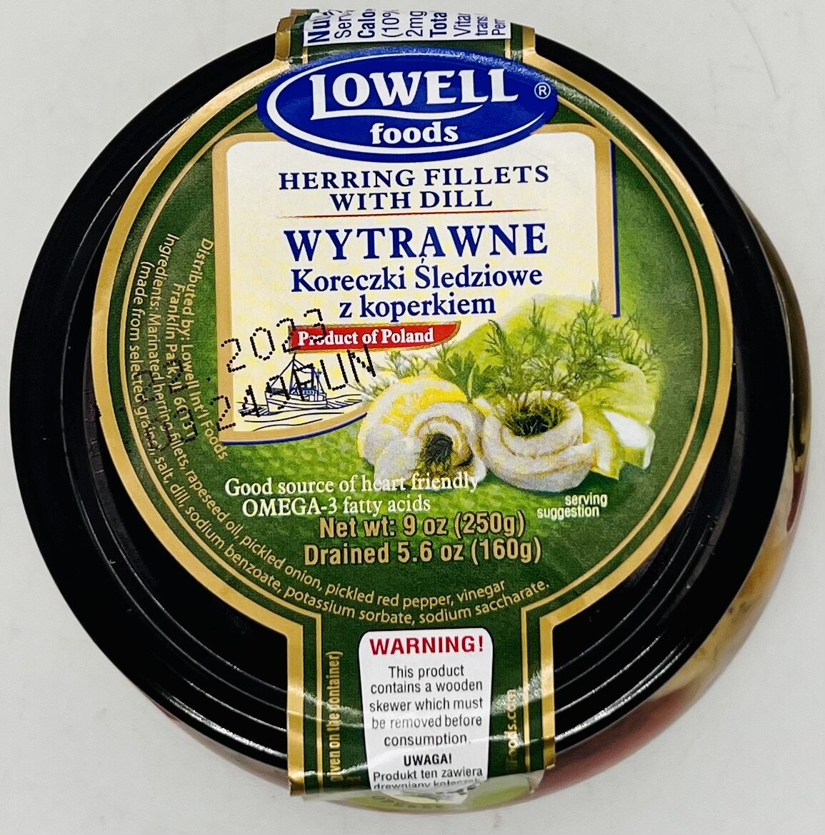 Marinated herring fillets, rapeseed oil, pickled onion, pickled red pepper, vinegar, salt, dill, sodium benzoate, potassium sorbate, sodium saccharate.