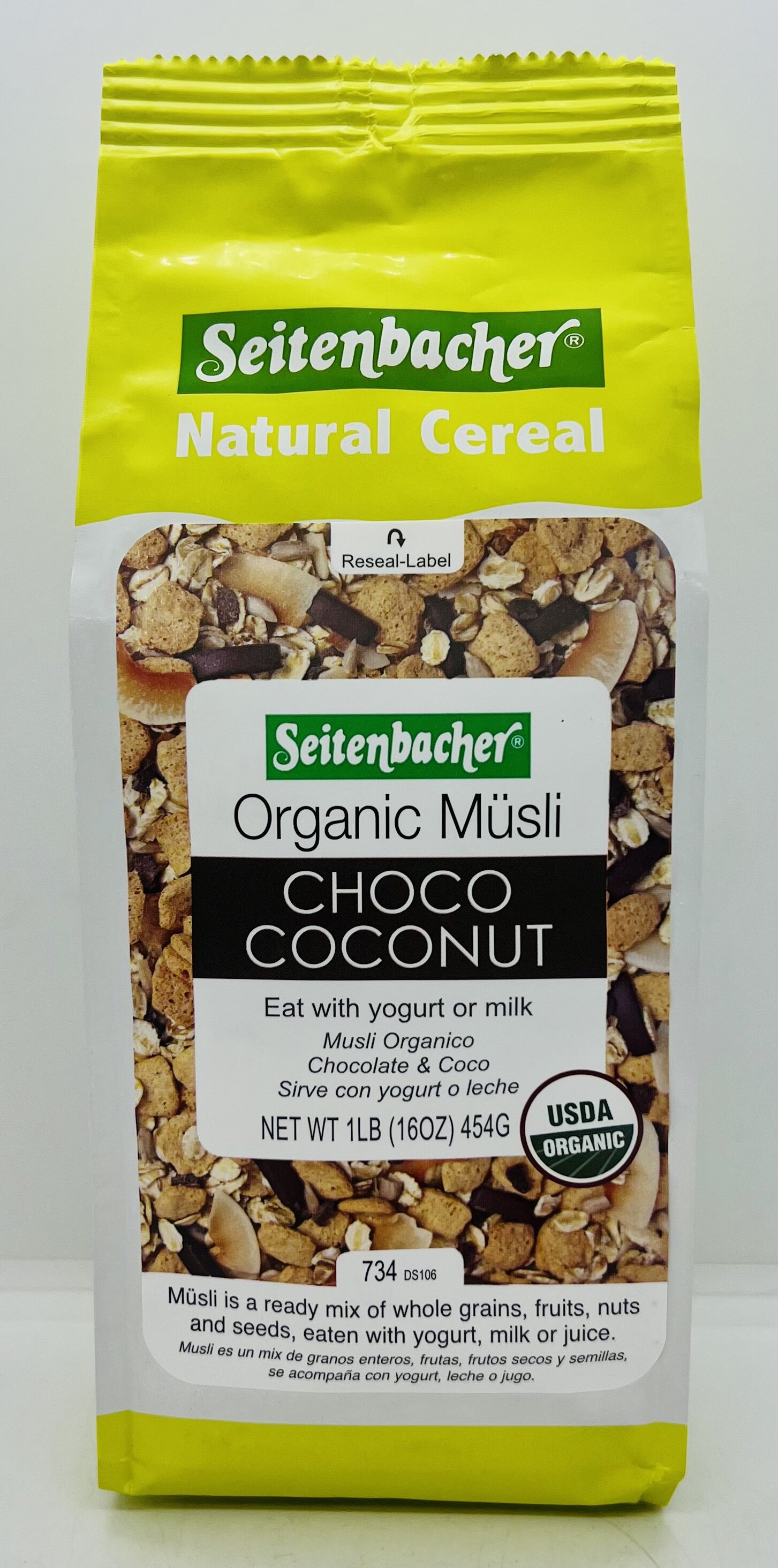 ORGANIC OATS, ORGANIC CHOCOLATE (ORGANIC CANE SUGAR, ORGANIC COCOA BUTTER, ORGANIC COCOA POWDER), ORGANIC BARLEY FLAKES, ORGANIC SOY FLAKES (ORGANIC GMO FREE CORN, ORGANIC GMO FREE SOY, ORGANIC MAPLE SYRUP, SEA SALT), ORGANIC COCONUT, ORGANIC FLAX SEEDS, ORGANIC SUNFLOWER KERNELS.