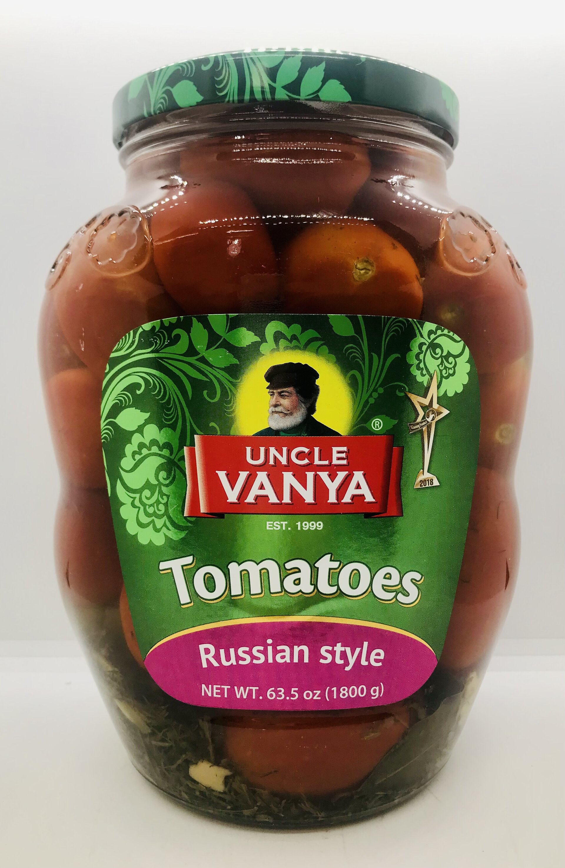 Fresh tomatoes, water, sugar, dill, salt, acidity regulator: acetic acid, garlic, black pepper, bay leaf.